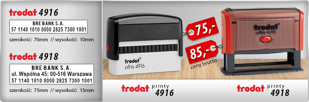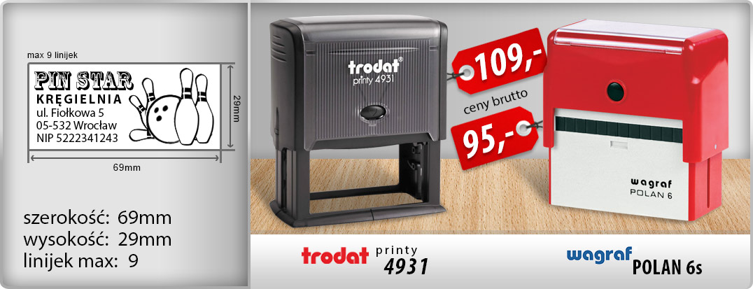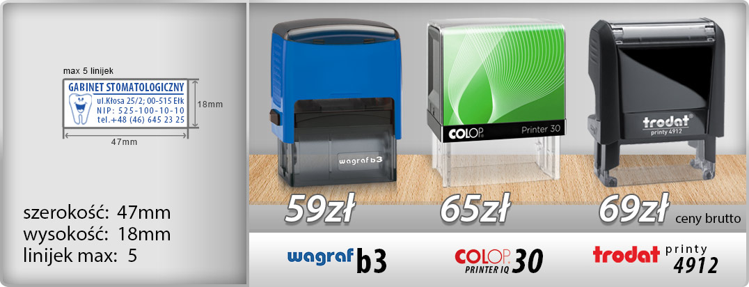 Wagraf b3s, Colop 30 i Trodat 4912 o polu roboczym 47x18mm. Najpopularniejszy rozmiar pieczątek firmowych, lub większych imiennych.